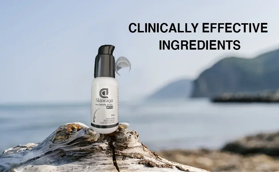 Skinraga serum is the combination of natural origin apigenin and oleanolic acid with the vitaminated matrikine biotinyl-gly-his-lys in solution.